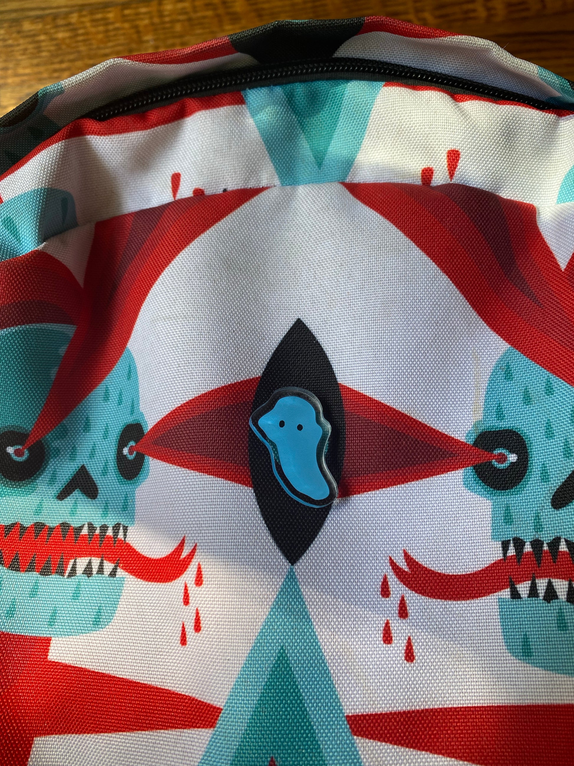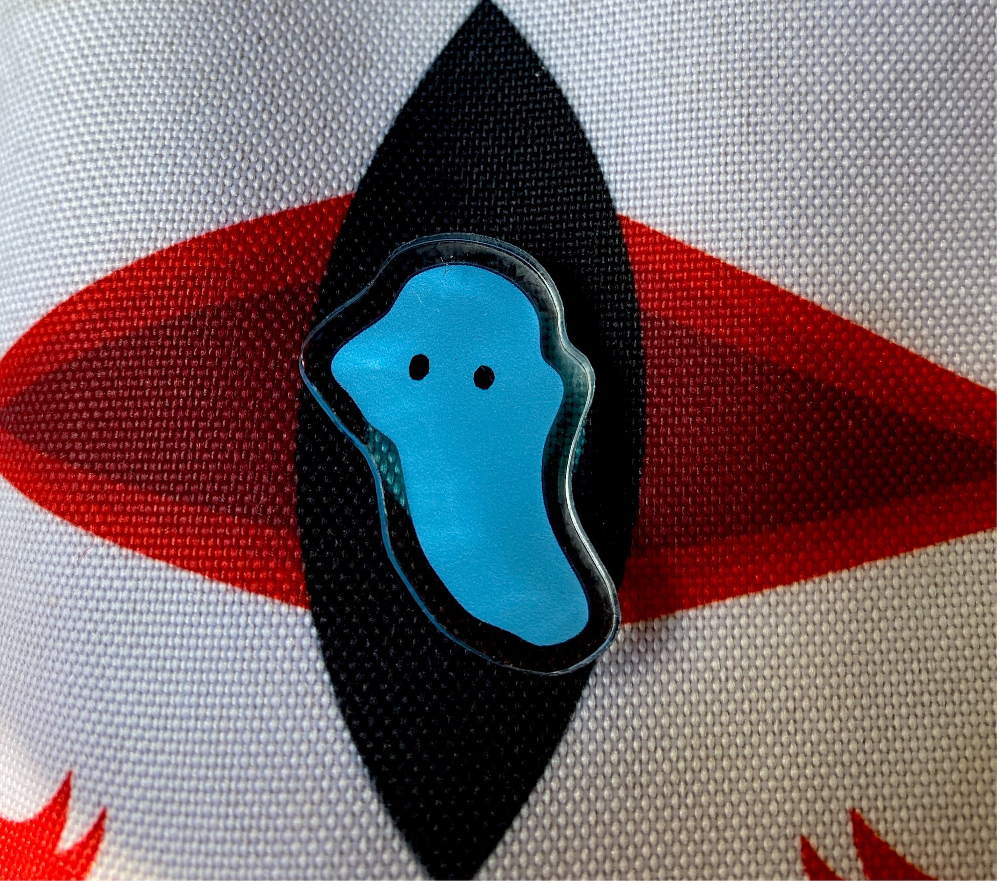 Acrylic pin, 1” x 1.3”. Blue ghost.