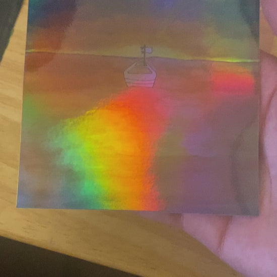 This sticker is 4" x 4", it's the cover art for the song Unreal and feature the Journey boat sailing off into the sunset. There are only 30 of these! Super limited edition.